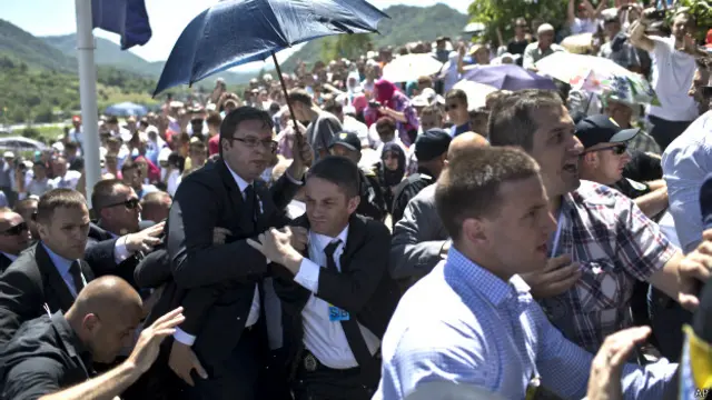 Хотира маросимига Сербия Бош вазири Александр Вучич ҳам борган, бироқ ғазабнок оломон тошлар отиб Сербия бош вазирини қувиб солганлар.