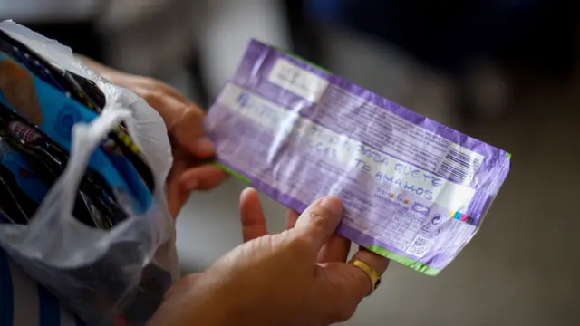 Trong một căn hộ nhỏ ở khu nhà ở xã hội gần thủ đô Caracas, bà Adriana Briceño cầm trên tay thứ trông giống như một mẩu rác, nhưng ẩn bên trong tấm giấy gói thanh sô cô la cũ ấy là một lời nhắn.