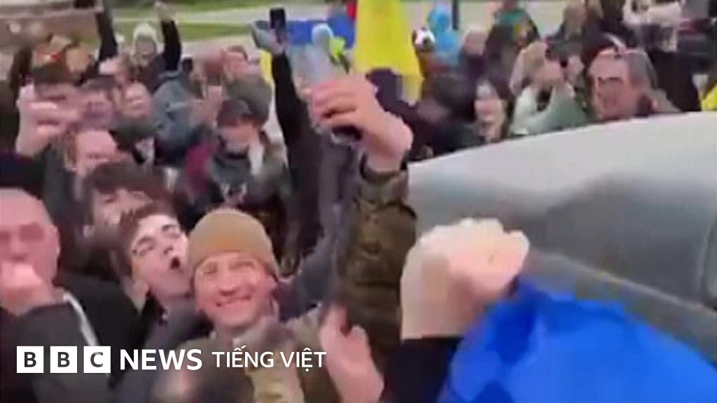 Hình ảnh đăng trên mạng xã hội cho thấy đám đông tụ tập ở trung tâm thành phố sau khi quân Nga rút khỏi khu vực này. Người dân hò reo và hô to “Ukraine Vinh quang! Các anh hùng Vinh quang!” và “Quân đội Ukraine Vinh quang”.
