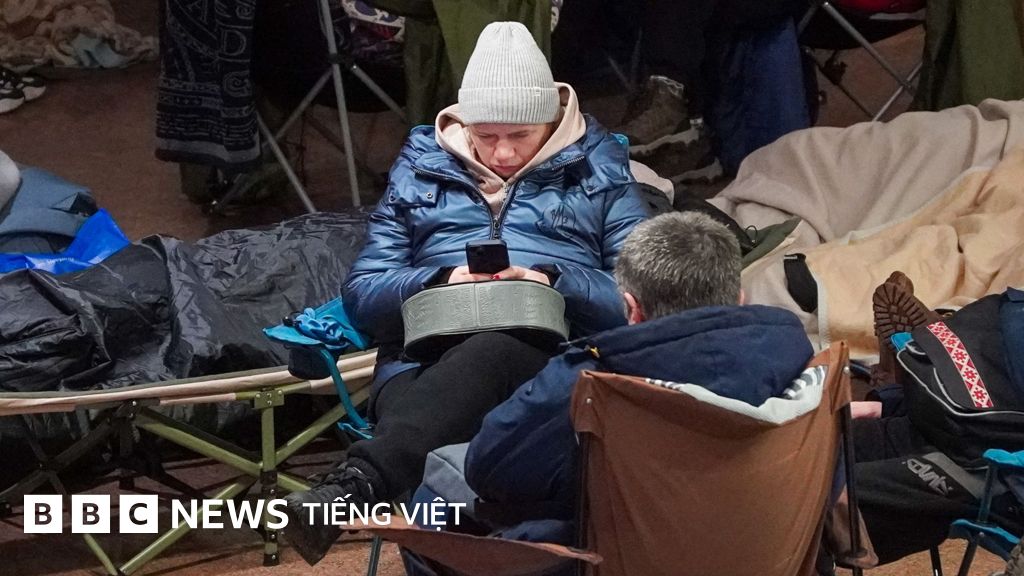 Chụp lại hình ảnh, Người dân Kyiv trú ẩn tại một nhà ga xe lửa trong các cuộc không kích của Nga