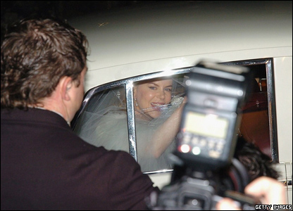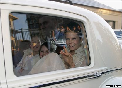 Kidman mặc bộ đồ cưới màu trắng truyền thống và đi cùng người cha trong chiếc xe limousine.