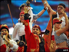 "Eurovision sẽ không làm thay đổi chính sách ngoại giao của thế giới đối với Serbia, nhưng nói sẽ có ảnh hưởng tích cực lên khán giả truyền hình châu Âu." Thủ đô Serbia được trang hoàng lộng lẫy. Trước buổi biểu diễn, nhân viên vệ sinh mặc áo phông màu da cam đổ ra đường phố Belgrade nhiều hơn thường lệ. Cũng tại đây, hồi đầu năm đã diễn ra nhiều bạo loạn sau khi phương Tây công nhận tuyên bố độc lập của Kosovo. Đại sứ quán các nước phương Tây bị tấn công và nhiều người có tư tưởng chống châu Âu. Serbia tỏ ra mất phương hướng sau cuộc bầu cử quốc hội cách đây hai tuần không mang lại chiến thắng đa số cho bất kỳ đảng nào. Đất nước này giờ đang chờ thành lập chính phủ liên minh để quyết định liệu Serbia sẽ đi theo hướng hội nhập với EU hay gần gũi hơn với Nga. | |||||||||||||||||||||||||||||||||||||||||||||||||||||||||||||||||||||||||||||
