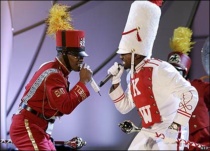 Ca sỹ nhạc rap Kanye West (bên phải) giành ba giải và trong buổi lễ đã có bài hát chung với diễn viên kiêm ca sỹ Jamie Foxx.