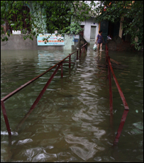 Mới hai tuần trước, người Hà Nội còn chưa hết ầm ĩ về chuyện mở rộng thành phố của mình thành thủ đô có diện tích lớn thứ hai thế giới, rồi chuyện Hà Nội mở rộng có số người mù chữ cao nhất cả nước và chuyện đi xe máy cần có đến hơn tám chục tiêu chuẩn sức khỏe. Nhoằng cái, cơn mưa lớn ngày thứ Sáu 31.10 đã khiến câu chuyện về một thủ đô già nua mà kém sức đề kháng bục ra như nước ồ ạt dâng ngập trên diện rộng các đường phố. Thứ Sáu 31.10 Buổi sáng mưa tầm tã, đến trưa ngớt một chút. Nhiều người tranh thủ tạt về nhà ăn cơm hoặc kết thúc công việc của tháng Mười nhưng chắc họ không ngờ đó lại là kỳ nghỉ cuối tuần kinh khủng nhất trong cuộc sống của họ ở Hà Nội. Còn với lũ trẻ con, là kỳ nghỉ cuối tuần dài ngoài mong đợi. Nhưng đấy là chúng còn quá may mắn, nếu so với cô bé Nguyễn Vân Anh học sinh lớp 7A trường Bế Văn Đàn đi học bằng xe đạp bị chết đuối vì trôi xuống cống. Đến cuối chiều, hỗn loạn xảy ra. Mạnh ai nấy chạy để kịp về nhà. Khu tôi ở, điện phụt tắt. Tôi còn kịp xem hai tấm ảnh chụp chiếc xe con và xe máy chìm lút giữa phố Huỳnh Thúc Kháng đỏ ngầu nước. Tuy nhiên, tôi vẫn hi vọng mưa ngớt để tranh thủ đi công chuyện nên cứ ngoan cố để xe máy ngoài sân. Cuộc hẹn được lùi lại vài lần, vì cứ đến gần giờ hẹn là mưa lại ào lên như trêu ngươi, ngập xâm xấp mặt sân. Cuối cùng cái xe cũng được dắt vào nhà và ai nấy đi ngủ sớm, gieo hi vọng thấp thỏm vào ngày cuối tuần yên ổn hơn. Thứ Bảy 1.11 Sáng sớm, cảnh tượng từ năm 1984 mới gặp lại: nước tràn vào nhà. Bể nước ngầm ngoài sân đã bị tràn qua nắp. Cả nhà hì hục khuân vác, đứa cháu tranh thủ đi mượn mấy viên gạch của nhà hàng xóm đang xây nhà để kê đồ cao lên.