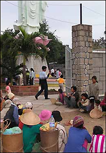 Người dân tộc từ những huyện miền núi ở Bình Định hàng ngày ngồi đó chờ chực sự bố thí của khách viếng chùa Long Khanh, Qui Nhơn. (Ảnh Tong Quoc Thang, TP HCM.)