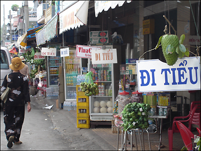 Một hình thức kinh doanh dịch vụ ở bến phà Long Xuyên, đơn giản nhưng cần thiết biết bao. (Ảnh Lê Công Tâm.)