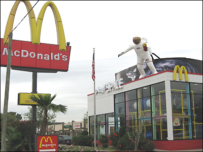 Một nhà hàng McDonalds tại NASA City, phía Nam Houston, với hình phi công vũ trụ dính trên nóc nhà. Có lẽ để phối hợp, hay ăn theo cùng các phi vụ thám hiểm không gian của NASA, khu Clear Lake City này cũng là nơi đặt đại bản doanh của các hãng kỹ nghệ cao của Mỹ như Lockheed Martin, Blackhawk Corp, Honeywell Aerospace. Tin nói rằng tới gần 200 kỹ sư người Việt đang làm cho NASA ở Houston.