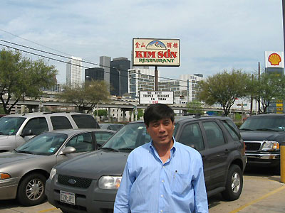 Hình anh La Trí, giám đốc điều hành hệ thống nhà hàng Kim Sơn. Kim Sơn 1 tại trung tâm của Houston, cùng với ba nhà hàng Kim Sơn khác đã tạo nên một hệ thống nhà hàng bán đồ ăn Việt nổi tiếng tại Texas, đánh bại nhà hàng Trung Hoa, hay Thái Lan. Sang Mỹ từ năm 1979 gia đình Kim Sơn đi lên bằng tay trắng, và thường xuyên được báo chí Mỹ cho điểm cao về món ăn Việt sinh động và thuần túy. | CÁC BÀI LIÊN QUAN Ảnh của bạn: Mưu sinh (1)13 Tháng 3, 2006 | Trang Ảnh Liên hoan sách Paris 19 Tháng 3, 2006 | Trang Ảnh | ||||||||||||||||||||||||||||||||||||||||||||||||||||||||||||||||||||||||||||