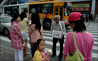 Hàn quốc có những chợ chòm hỏm giống hệt Việt Nam. Một bà bán hàng tranh thủ ngồi bóc gốc những cây hành lá cho vừa mắt khách hàng.