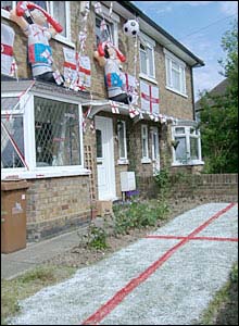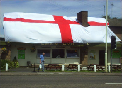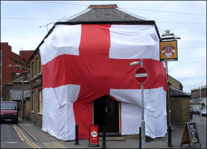 Ảnh Jennifer Harness: Dân chúng Anh treo cờ khắp nơi để cổ vũ cho đội tuyển Anh như tại quán bia Dunstable ở Beds. .