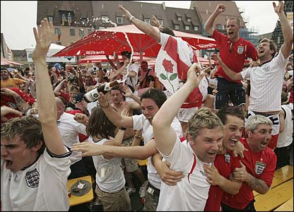 Fan theo dõi từ quảng trường Hauptmarket điên loạn lên vì vui mừng khi Anh cầm chắc vô vòng hai. | |||||||||||||||||||||||||||||||||||||||||||||||||||||||||||||||||||||||||||||