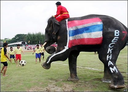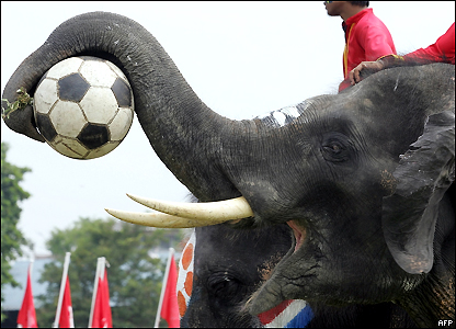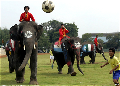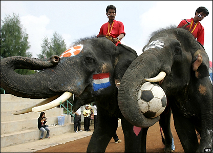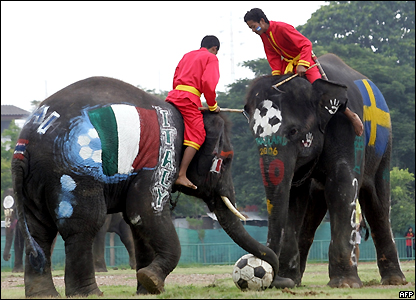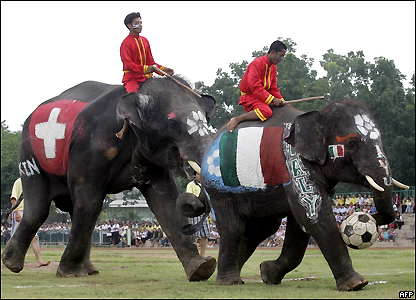 Đội voi mang màu cờ của các nước hiện đang tranh World Cup 2006 tại Đức.