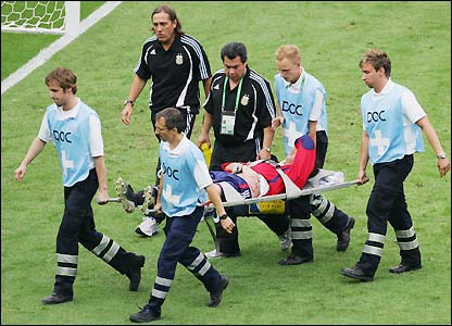 Đội bóng Nam Mỹ bị cú sốc khi thủ môn Roberto Abbondanzieri bị chấn thương, phải ra sân và thay bằng thủ môn dự bị