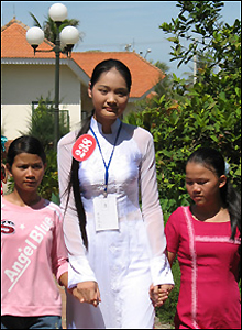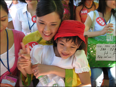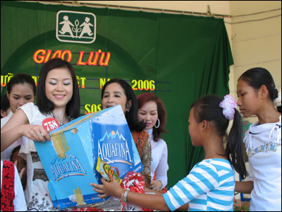 Có những chiếc vòng khá đắt tiền cũng được các người đẹp không tiếc trao tặng lại cho các em - Lê Thị Phương Giang (Thanh Hoá) đang làm điều đó.