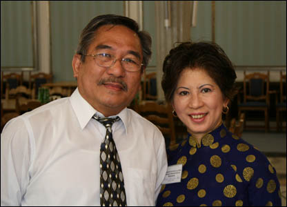 Các đại biểu từ Nam California, ông Ngô Chí Thiềng và bà Ngô Christina Bích. Họ nói họ mong muốn công nhân Việt Nam được hưởng các quyền tự do.