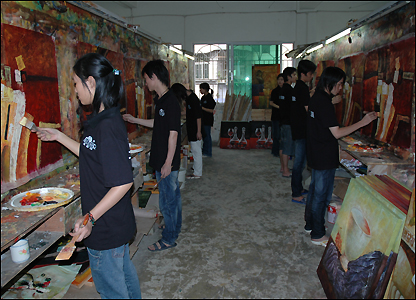 Nhiều thanh niên ở thôn quê đã bỏ ra thành phố. Họ làm đủ mọi việc, hoặc đi học nghề như xin vào xưởng vẽ này ở Da Fen. Tại đây các 'họa sĩ tương lai' sản xuất hàng loạt những tuyệt tác 'nhái' nhưng không hề biết họ đang vẽ cái gì và của ai.