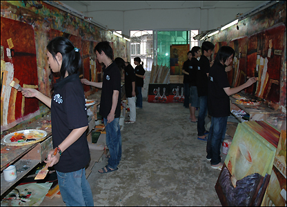Lỗ Siêu Sinh, học tới lớp 9 thì nghỉ vào tập vẽ được 4 năm nay, bây giờ có thể hoàn tất 10 tranh mỗi ngày, "Thường chúng em vẽ tranh người ta đặt trước và với số lượng lớn."