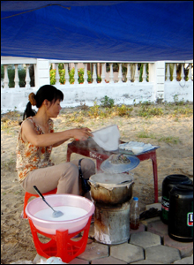 Tắm lên có đĩa bánh cuốn nóng thì tuyệt.