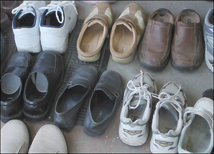 Trong chùa thiện nam, tín nữ có dịp gặp gỡ, chúc vui ngày Tết, hàn huyên tâm sự, tưởng nhớ Xuân quê nhà, thì ngoài hiên giày dép cũng có dịp... xả hơi. Nhìn những đôi giày cũng đủ biết chùa nghèo.