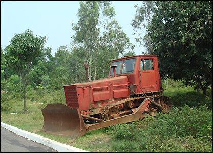 Xe ủi lấp hố bom. Ngã ba Đồng Lộc có vị trí rất quan trọng trong mạng lưới giao thông Bắc Nam. Từ đây có thể mở rộng ra các hướng, phục vụ tốt cho nhu cầu giao thông vận tải khi các tuyến giao thông ở đồng bằng bị cắt đứt.