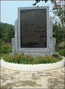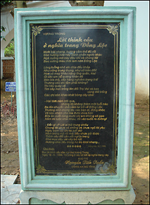Bên cạnh khu mộ là bia đá ghi bài thơ của nhà thơ Vương Trọng trong đó có câu: "Mười bát nhang, hương cắm thế đủ rồi. Còn hương nữa hãy dành phần người khác. Ngã xuống nơi đây đâu chỉ có chúng tôi..."