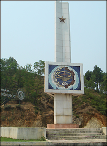 Tượng đài chiến thắng Đồng Lộc, phía trên là biểu tượng của lực lượng Thanh niên xung phong, bộ đội, công nhân giao thông, công an, dân quân du kích.