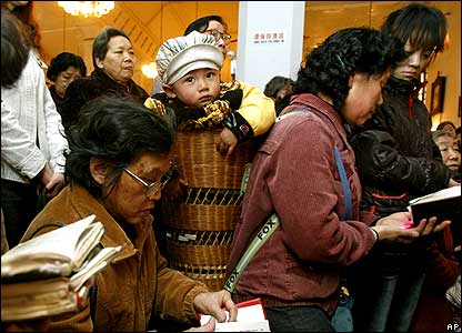Ở tỉnh Trùng Khánh miền nam Trung Quốc, một em bé được địu tới dự buổi lễ trọng.