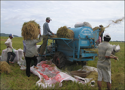 Cứ vào vụ thu hoạch lúa, hàng ngàn thợ gặt từ khắp nơi đổ về khu vực ĐBSCL để thu hoạch lúa thuê thay cho máy móc vì nền nông nghiệp Việt Nam chưa được cơ giới hóa nhiều. Gia đình bà Nga (Kiên Lương, Kiên Giang) gồm 5 người đã đi gặt lúa thuê gần 20 năm nay. Bà Nga cho biết sau vụ gặt (khoảng 2 tháng), trừ hết chi phí, cả gia đình bà cũng kiếm được khoảng 7 triệu đồng.