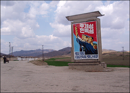 Khẩu hiệu vẽ trên tường kêu gọi nông dân giữ vững bản sắc và niềm tự hào dân tộc. Bắc Hàn là một quốc gia được chăng đầy những biểu ngữ với khẩu hiệu, từ kêu gọi chống chủ nghĩa đế quốc tới tích cực tăng gia sản xuất.