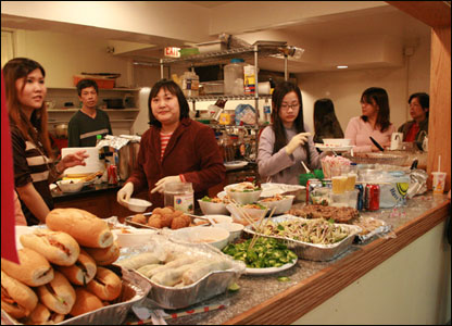 Cộng đồng Việt ở địa phương chuẩn bị các món ăn ngày Tết.