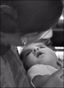 Ảnh chụp vào một buổi trưa hè, và người mẹ đang ru con vào giấc ngủ ngon.