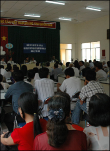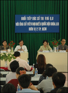 Không khí tại buổi gặp gỡ cử tri trước cuộc bầu cử ngày 20 tháng Năm của đơn vị bầu cử số 2 (gồm các quận 7, 8, Nhà Bè và cần Giờ) được tổ chức tại Phường 16 Quận 8, TP Hồ Chí Minh.