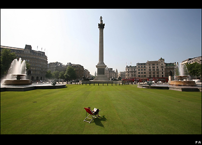 Tượng đô đốc Nelson nhìn xuống quảng trường mang tên trận hải chiến Trafalgar năm 1805. Đây được xem là một trung tâm dân chủ của Anh và đã chứng kiến nhiều cuộc mít tinh biểu tình. | |||||||||||||||||||||||||||||||||||||||||||||||||||||||||||||||||||||||||||||