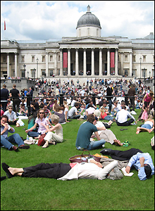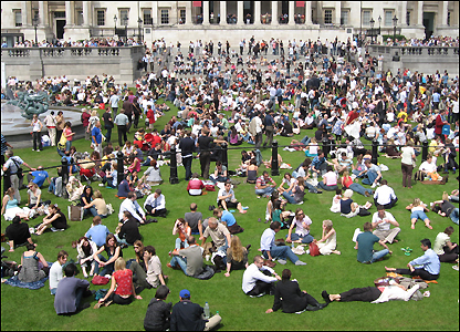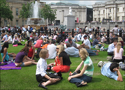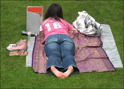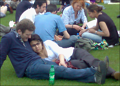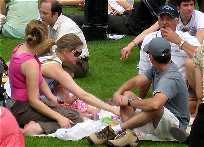 Thời tiết đầu mùa hè đã ấm áp nên một số người kéo nhau ra picnic trên thảm cỏ trước khi trời lại mưa cuối tuần theo dự báo.