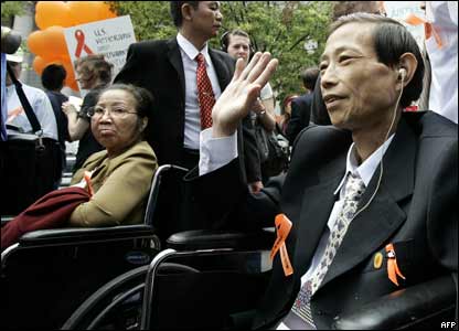 Trong đoàn có ông Nguyễn Văn Quý và bà Nguyễn Thị Hồng. Họ nói mình là nạn nhân của chất độc dioxin.