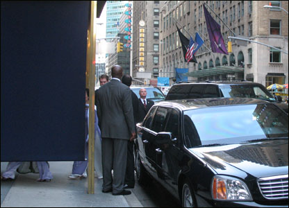 Chiếc xe chở Chủ tịch Việt Nam Nguyễn Minh Triết đến trước khách sạn.