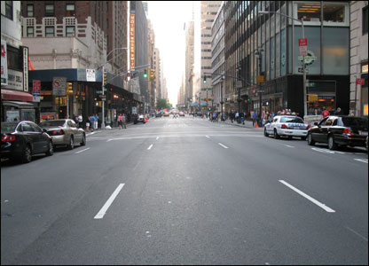 Đường phố vắng vẻ trong chốc lát khi cảnh sát chặn xe và giao thông để phái đoàn Việt Nam tới khách sạn.