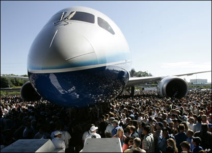 Rất nhiều người đã có mặt tại nhà máy của Boeing tại Everett, tiểu bang Washington, để xem sản phẩm đầu tiên của loại máy bay 787 Dreamliner ra mắt.