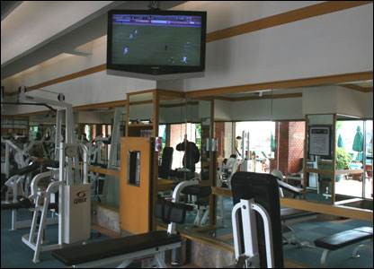 Phòng tập thể hình có cả tivi để theo dõi các sự kiện thể thao.