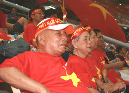 Một số cổ động viên khá cao tuổi không hò reo nhưng theo dõi trận đấu rất kỹ