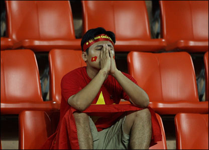 Phan Thanh Bình được đưa vào chơi phút 70 của trận đấu nhưng không thay đổi được tình thế. Huấn luyện viên tuyển VN nói tầm vóc cầu thủ VN còn thấp bé là một hạn chế lớn. | |||||||||||||||||||||||||||||||||||||||||||||||||||||||||||||||||||||||||||||