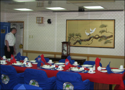 Phòng ăn của các sĩ quan trên Hàng không mẫu hạm USS Kitty-Hawk cũng là nơi mời các nhà báo dùng cơm.