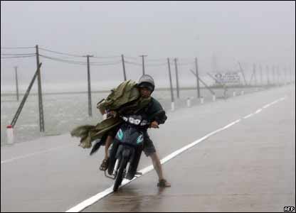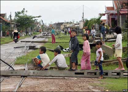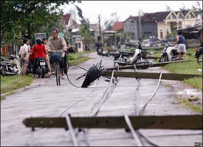 Giao thông cũng bị gián đoạn khi cơn bão đem theo gió to đổ bộ vào vùng ven biển miền Trung vào tối thứ Tư.