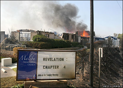 Nhà thờ tại Malibu là một trong vài địa điểm bị cháy khi vụ hỏa hoạn nổ ra tại thành phố ven biển này.