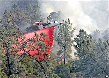 Các đội phi cơ được gọi đến để phun nước và xịt thuốc dập cháy trên toàn bang.