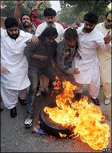 Cảnh sát Pakistan đã triển khai một lực lượng an ninh lớn ở Lahore, nơi lãnh tụ đối đối lập, bà Benazir Bhutto, đang bị quản thúc tại nhà, và họ đã bắt giữ hàng trăm người ủng hộ bà.