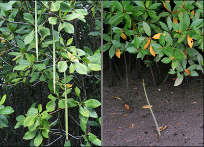 Trời sinh trái đước dài và nhọn như một mũi tên nên đến khi chín rụng là tự động cắm sâu xuống bùn.