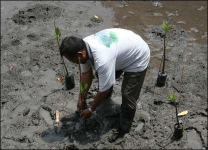 Rừng đước bảo vệ bờ biển cũng như ngăn không để đất lấn biển nhưng rác thải có thể làm cây ngạt thở.