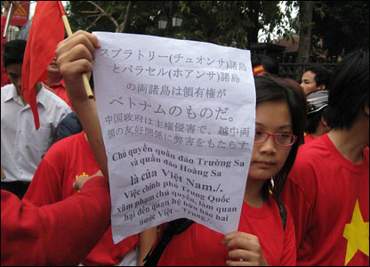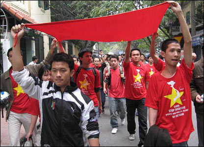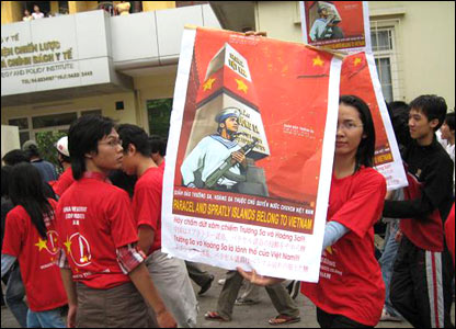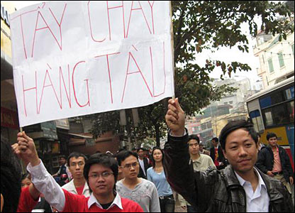 Một số người còn đưa ra thông điệp mạnh hơn. Tuy nhiên, cuộc tuần hành đã không đến được trước đại sứ quán Trung Quốc tại Hà Nội, do công an đã phong tỏa khu vực này.