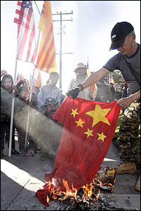 Nhiều lá cờ Trung Quốc đã bị người biểu tình giận dữ châm lửa đốt tại khu vực Little Saigon. (Hình từ trang mạng ocregister.com) | CÁC BÀI LIÊN QUAN Việt Nam phản đối động thái mới của Trung Quốc 10 Tháng 12, 2007 | Chuyên đề | ||||||||||||||||||||||||||||||||||||||||||||||||||||||||||||||||||||||||||||